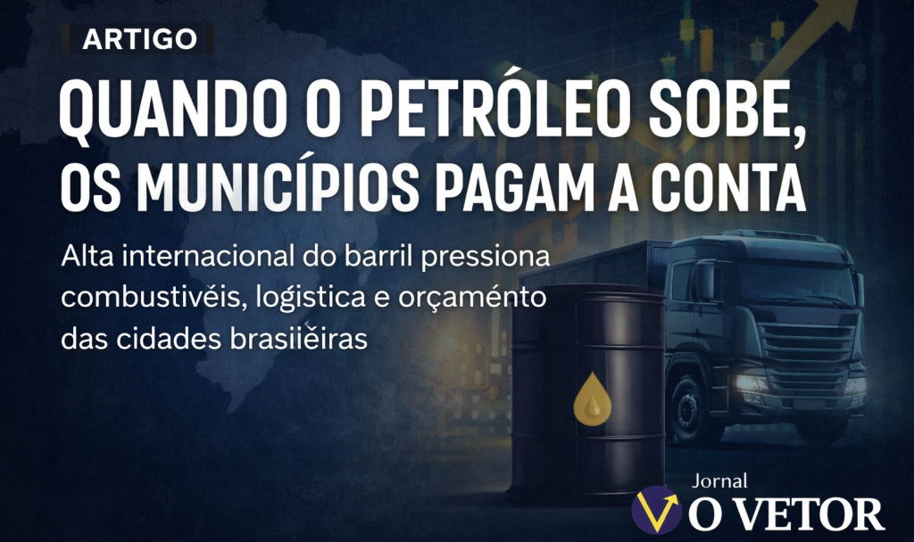 Quando o preço do petróleo sobe nos mercados internacionais, a notícia costuma ocupar espaço nos cadernos de economia. No entanto, seus efeitos ultrapassam rapidamente o mundo das bolsas de valores e chegam até o cotidiano das cidades brasileiras — muitas vezes de forma silenciosa, mas profundamente concreta no orçamento das prefeituras. Recentemente, a cotação internacional do petróleo voltou a ultrapassar a marca de 105 dólares por barril, reacendendo preocupações sobre seus impactos na economia global. À primeira vista, trata-se de um indicador distante da realidade das cidades brasileiras. No entanto, seus efeitos chegam rapidamente ao orçamento público municipal.