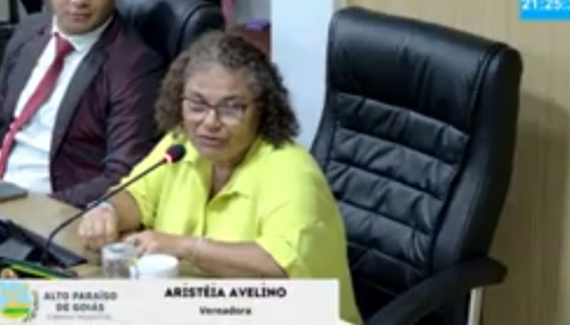A vereadora Aristéia do Nascimento dos Santos (Teia) pediu a palavra e, antes de tudo, cumprimentou todos os presentes, mencionando a chegada do jornalista Roberto Naborfazan, o pastor Marlony, os servidores da iluminação pública Minervino e Gercino, o servidor Jefinho e os funcionários da Casa.