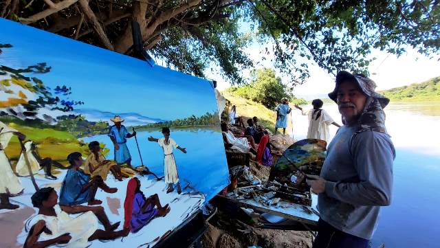 Otoniel está radicado na Chapada dos Veadeiros há doze anos, é especialista em pinturas ao ar livre, inclusive já pintou algumas vezes no Riachão e nas margens do Rio Paranã.